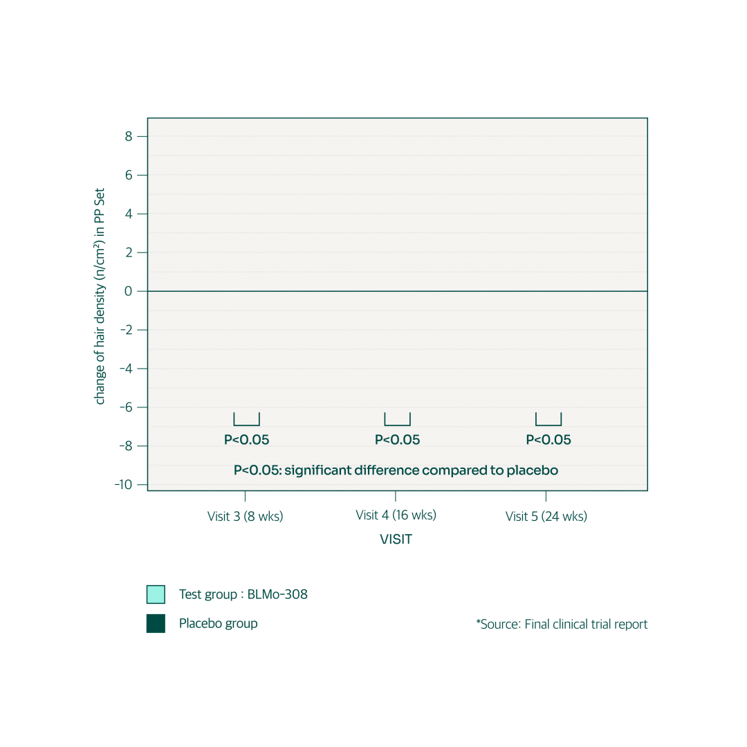 The clinical trial results of BLMo have achieved statistically significant improvements in hair density.